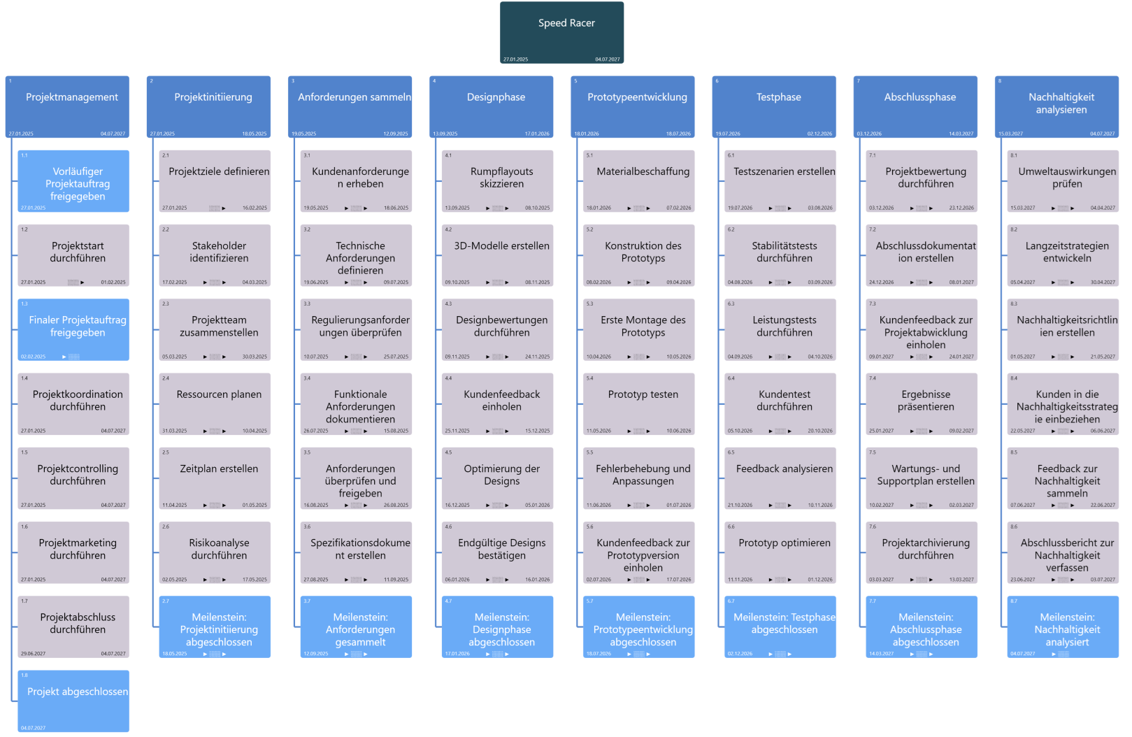 Sie erhalten einen vollständigen Projektstrukturplan, den Sie weiter bearbeiten können, bereits auf Basis einer kurzen Projektbeschreibung.